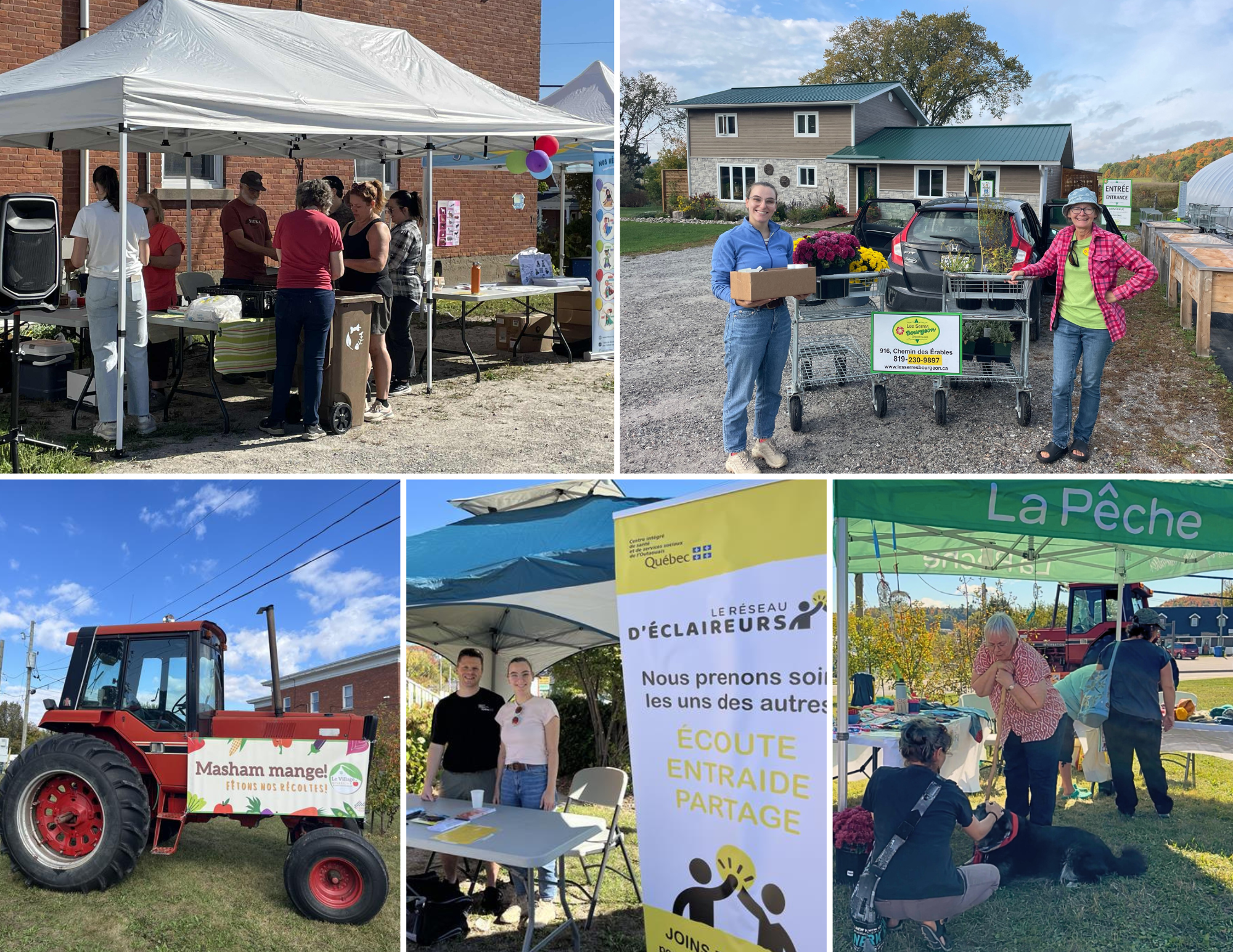 Masham Mange visait à mettre en valeur l’importance de l’alimentation locale comme levier pour créer des liens, favoriser des échanges et renforcer le tissu social. Le site extérieur du presbytère de Masham a offert un cadre chaleureux à la fête, réunissant kiosques de producteurs locaux et d’organismes communautaires. Les visiteurs ont pu profiter d’activités familiales, d’une table d’échanges de vivaces, ainsi que de sacs de maïs offerts gracieusement.